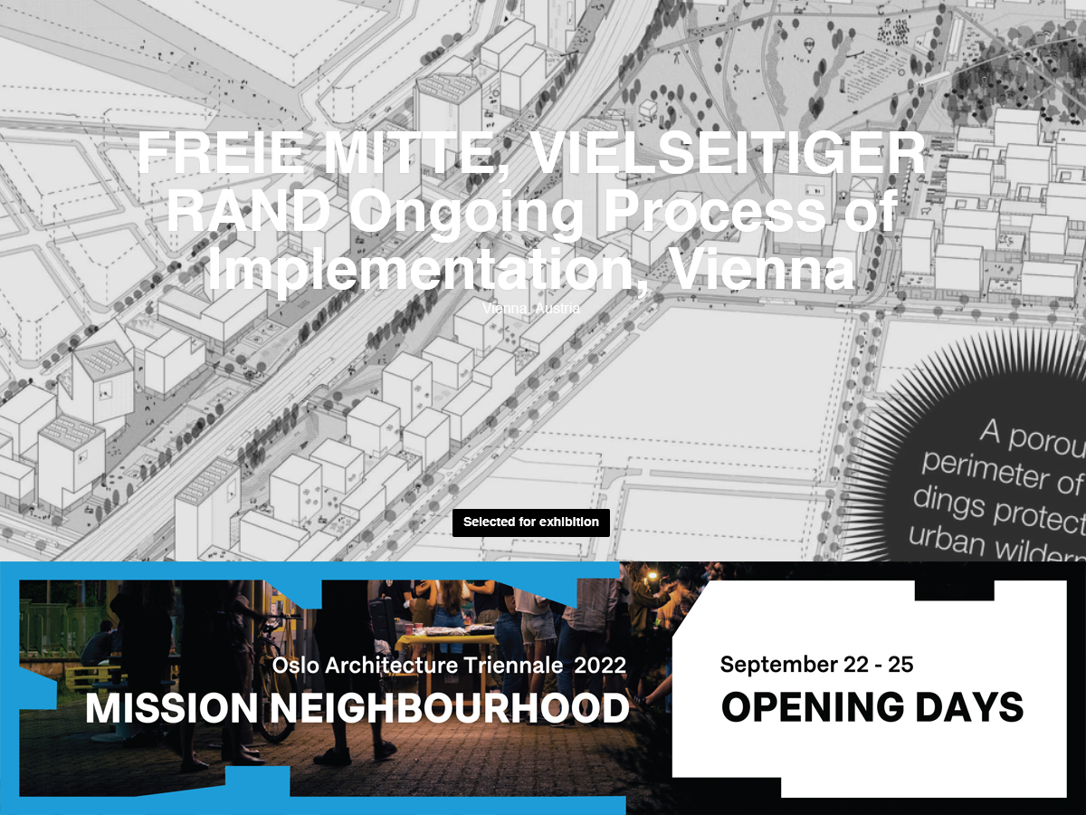 Wir freuen uns sehr bei der 8. Oslo Architecture Triennale als Aussteller eingeladen worde zu sein. Wir zeigen in der Kategorie Project Neighbourhood unser Projekt Freie Mitte am Nordbahnhof Wien.