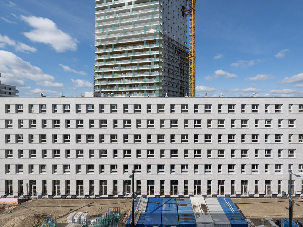 Auch von außen zeigt der Loftflügel sein neutrales Kleid, das unzählige Konfigurationen im Inneren erlaubt. Bald kommen die goldgelben Textilmarkisen!