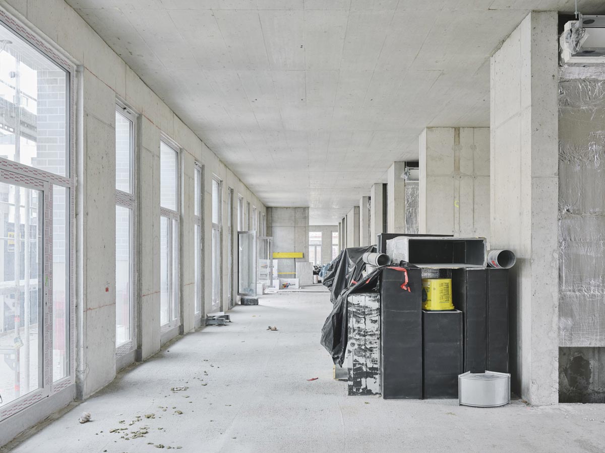 Der Loftflügel an der freien Mitte im vielversprechenden Rohbau: Tragende Schächte ermöglichen die offene Gestaltung der 6 Geschoße.