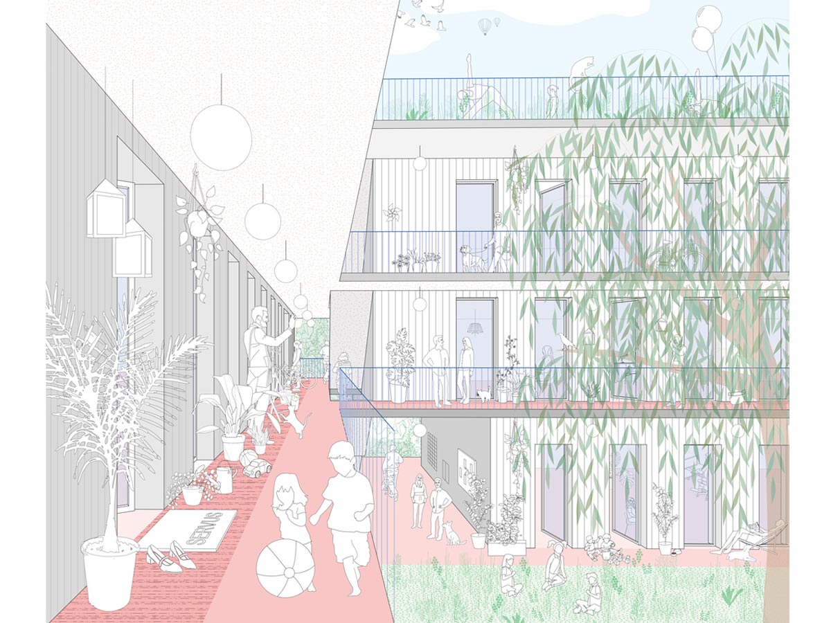 Wir befinden uns im co-kreativen Planungsprozess mit der Baugruppe MONA 21 für ein Wohnhaus mit 35 Wohneinheiten im Stadtquartier Nord von Bad Vöslau. Das Haus ist in Holzbauweise geplant und schmückt sich mit einem begrünten Laubenganghof und einem rundumlaufenden Balkonband. Die Gruppe sucht nach Bewohner*innen für das Haus, die sich für die Lage – nur Minuten vom Bahnhof und vom Thermalbad entfernt – begeistern und sich nach Wohnen in Gemeinschaft sehnen.