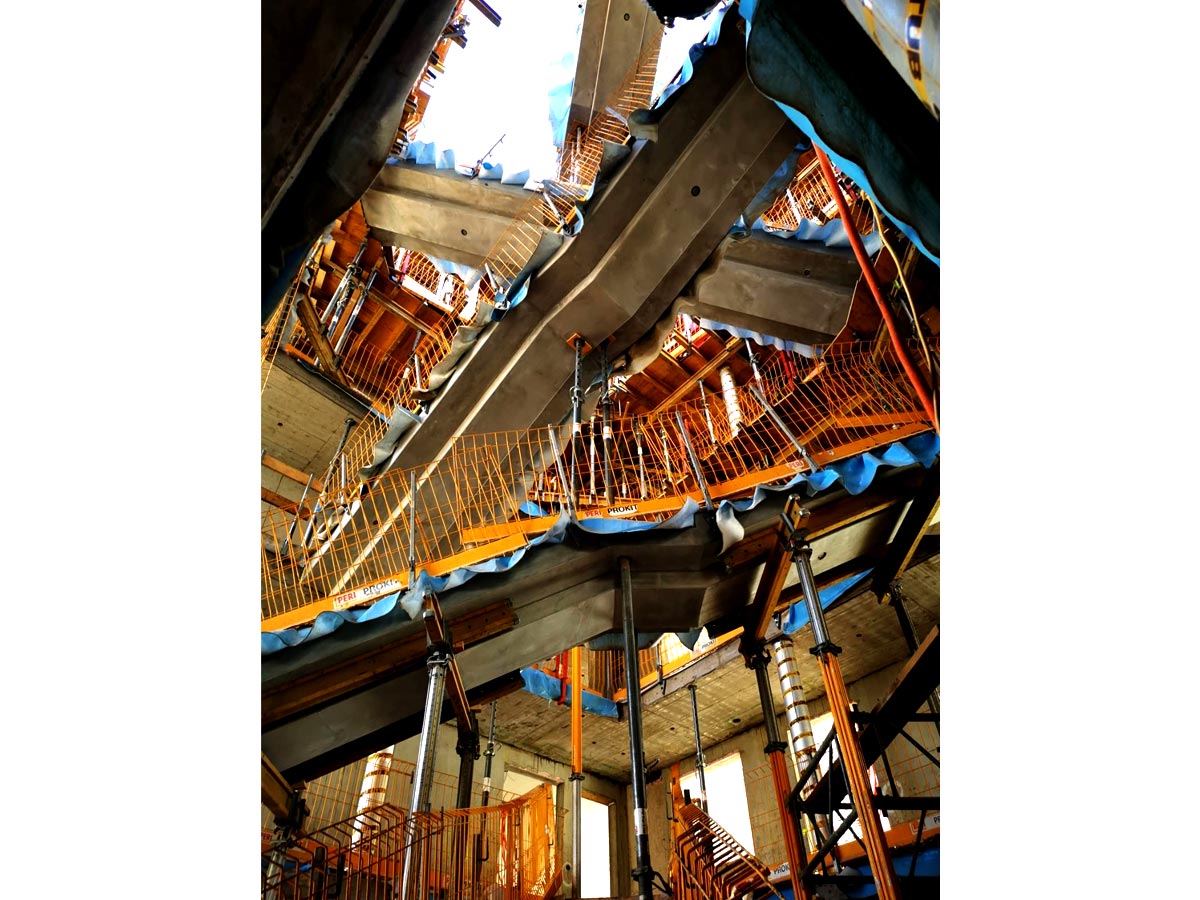 Im Projekt Parcours zieht sich über 3 charakteristische, speziell gestaltete Stiegenhauskerne ein Rundweg durch das Gebäude. Die Treppen im Pawlatschenatrium entsprechen der großzügigen Flachheit der Haupttreppen in historischen Schlössern – der Komfort des würdevollen, unangestrengten Schreitens kommt hier dem Wohnalltag zugute. Treppen-Gehen wird zum Alltagsvergnügen.